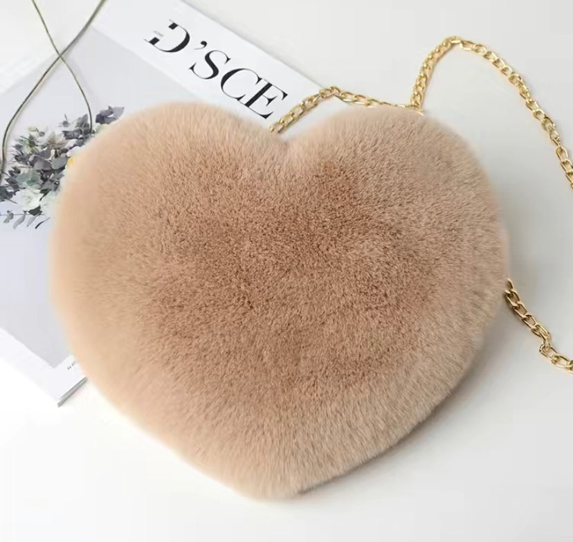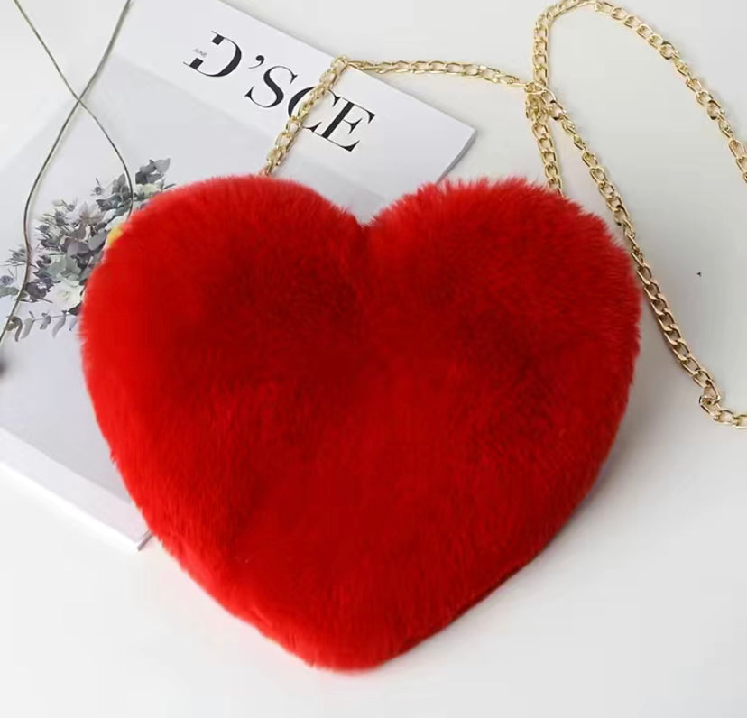 Heart-Shaped Fluffy Shoulder Bag with Chain Crossbody & Cute Zipper Purse