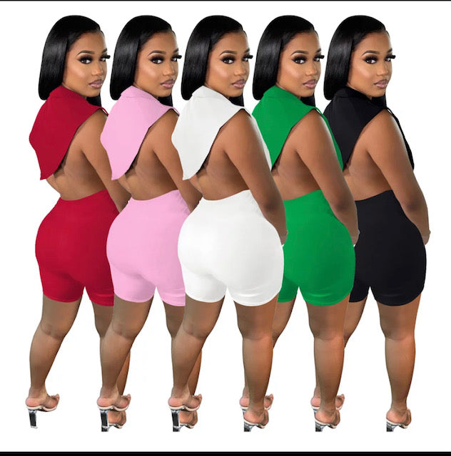 Elegant street women's set Irregular V-hem blazer vest and short.